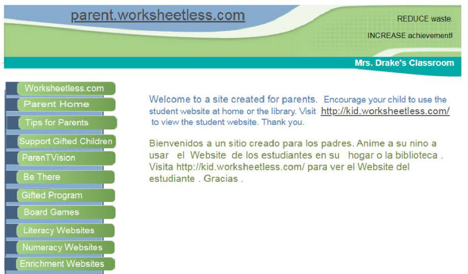 In addition to a student website, I created websites for parents and teachers.